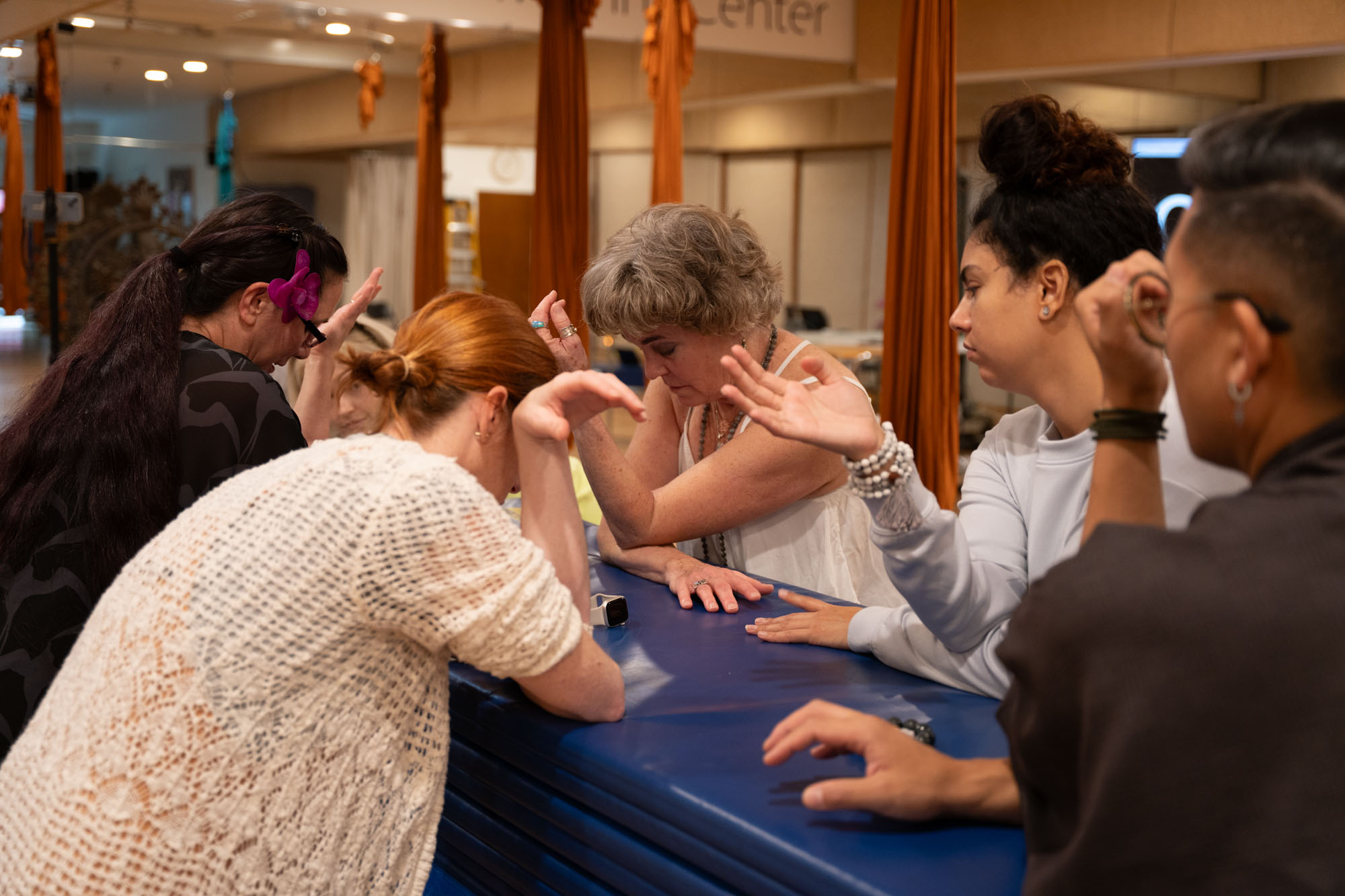 Our three Senior Intern Trainers worked tirelessly with Douglas and me to renovate our lesson plan for online training to a more dynamic plan for in-person. Mālia Helelā (hula and lomilomi massage, Hawai’i), Stacey Stone (ELDOA, personal training, and yoga, Virgin Islands), and Dustin Hara (vocal coaching and bowling, Hawai’i) joined me for practice sessions the entire week leading up to the training. Amongst us we dissected our entire online lesson plan and put it back together to provide lots more movement for in-person learning. By the time we finished our preparatory week, we had invested at least 200 people hours in the newly crafted course, and our Senior Intern Trainers knew the material from the inside, out!