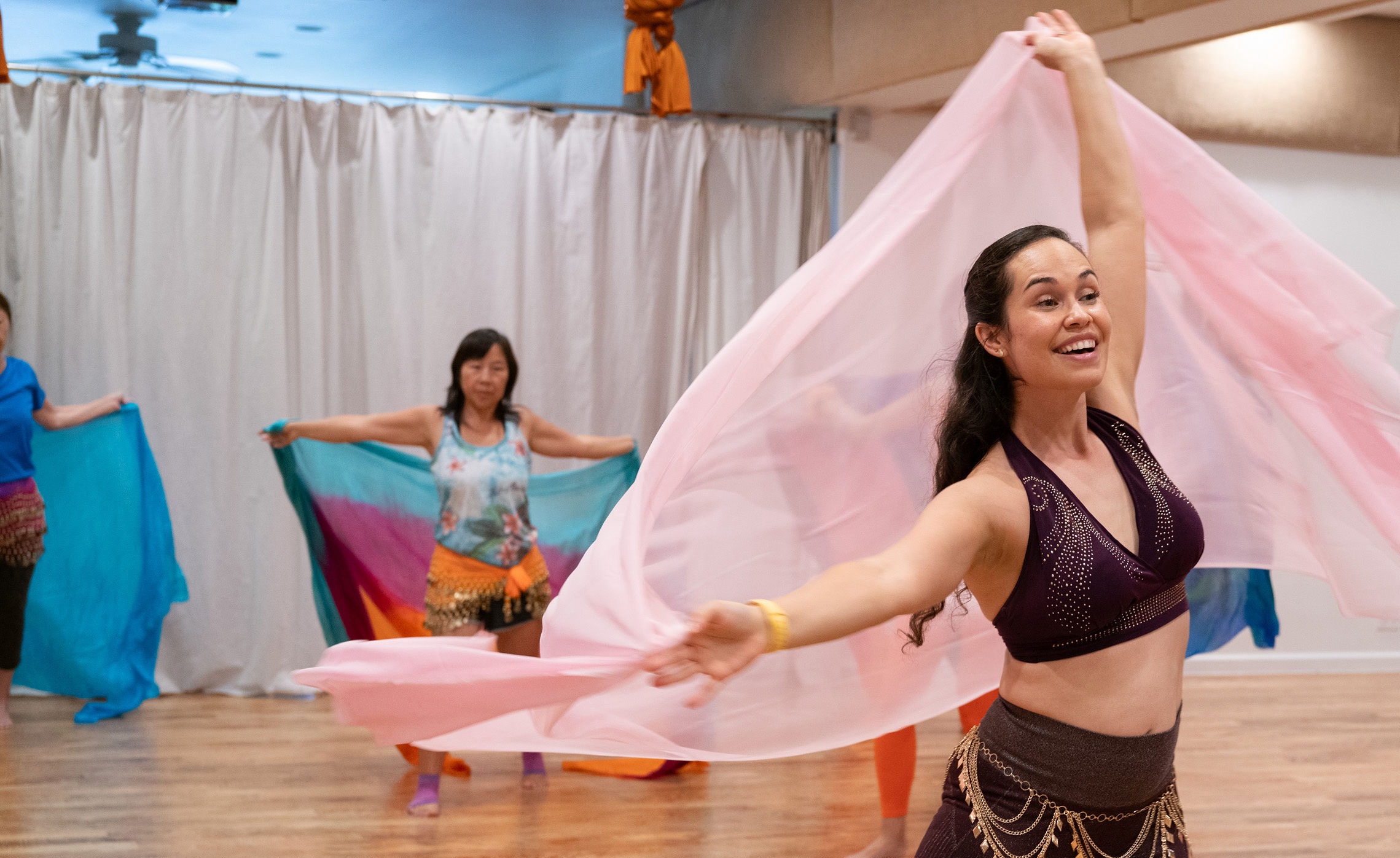 Having stepped into her first bellydance class at age 4 with her mother, also an avid dancer, Andrea naturally signed up for Murat’s bellydance class at Still & Moving. After one class, she couldn’t stop smiling. She beamed, grateful to find a space to play and feel like herself again. It didn’t take long before Andrea joined the team as a Bollywood dance substitute teacher. Then another opportunity arose to share one of her great creations: BeliRaq Dance Fitness, a combination of dance and fitness that Andrea had created in 2011.