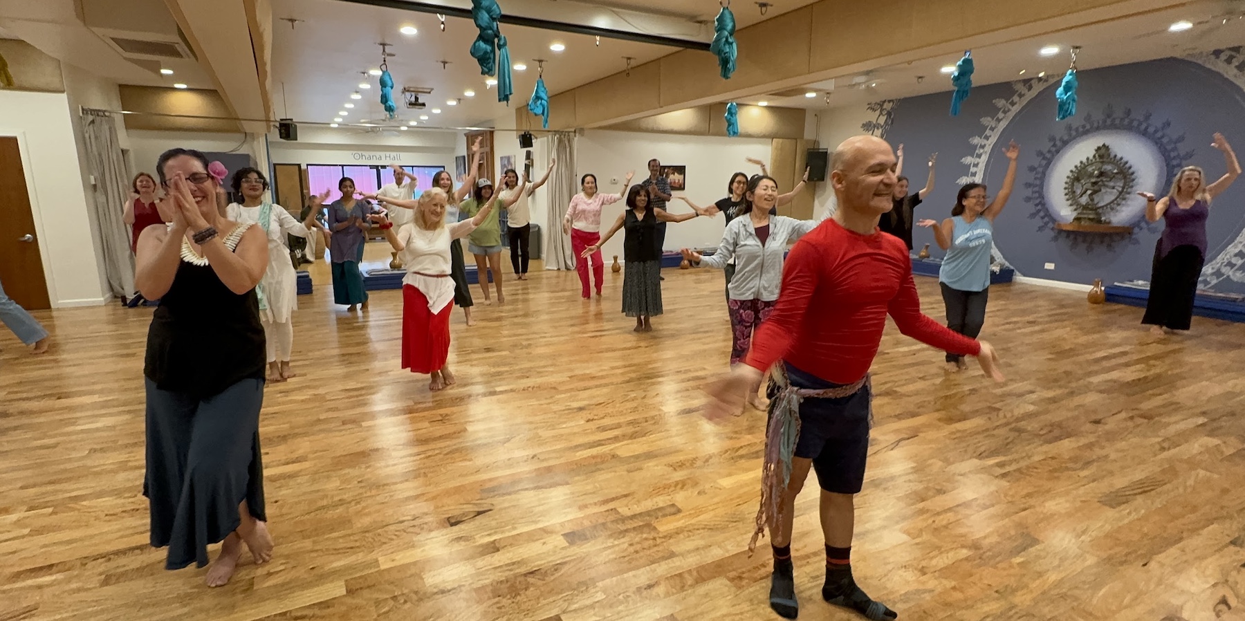 Murat’s charisma has filled the Barefoot Ballroom dance floor since he started teaching at Still & Moving Center in 2015. Whether moving as a monkey hero or a demon king in our Diwali performances, Murat has always completely captivated his audiences with his colorful movement. In Turkish belly dance classes, we have shimmied and sparkled with him, wearing our belly dance wraps, confidently “strutting our stuff” with Murat’s fervent encouragement. Dance with Murat, and you sweat away buckets and feel like a million bucks!