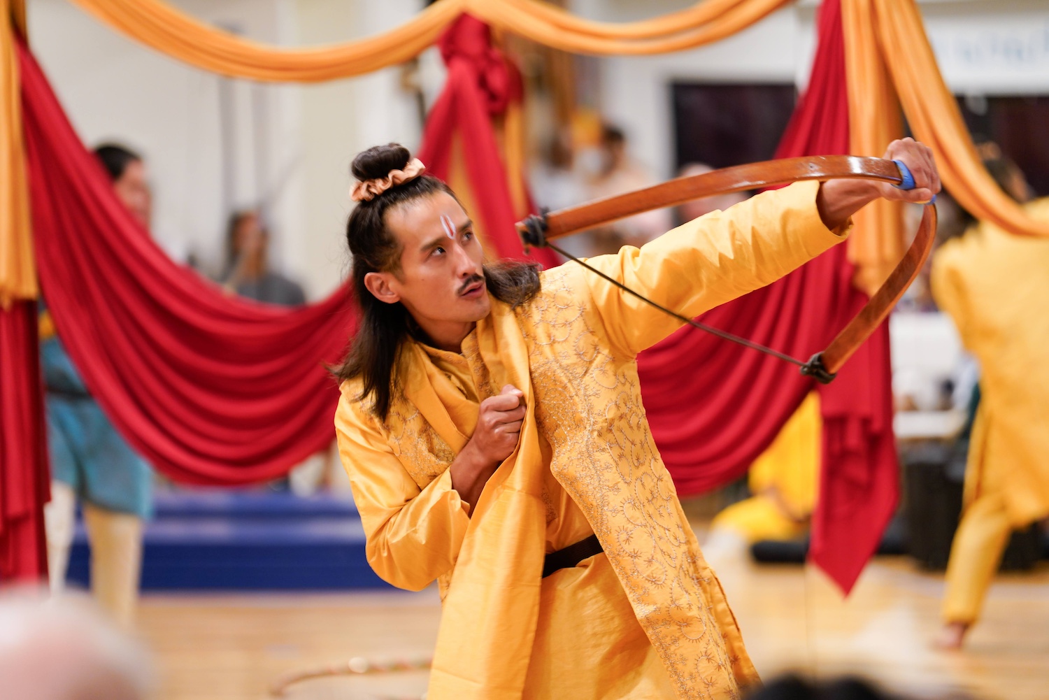 As the story of Ram and Sita goes, Princess Sita holds the power to choose her husband. Prince Ram attends the competition with many other eager gentlemen to show their strength and worthiness of this great honor. When only Prince Ram manages to lift the sacred bow that no other man can lift, Sita knows the gods have given her the sign that Ram is the one for her.